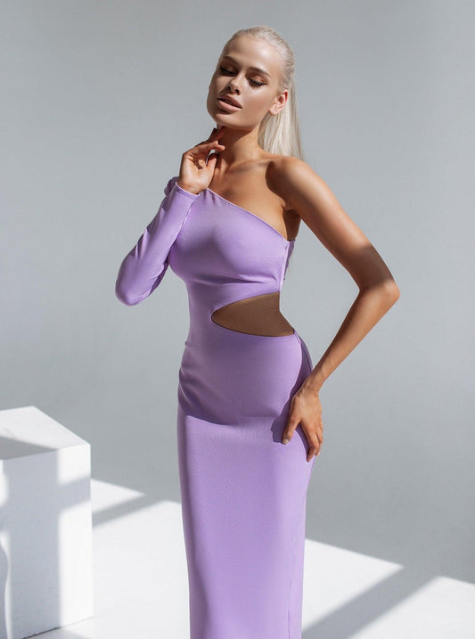 Bandage Violet One-Shoulder With Leg Slit Maxi Dress
