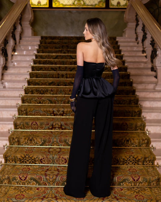 Inès Black Satin Sweetheart Peplum Top