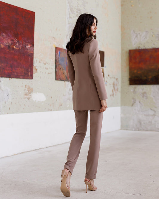 Beige Promo Suit 2-Piece With Basque And Flared Pants