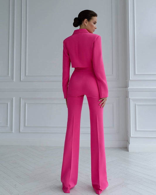 Red Promo Suit 2-Piece With Basque And Flared Pants