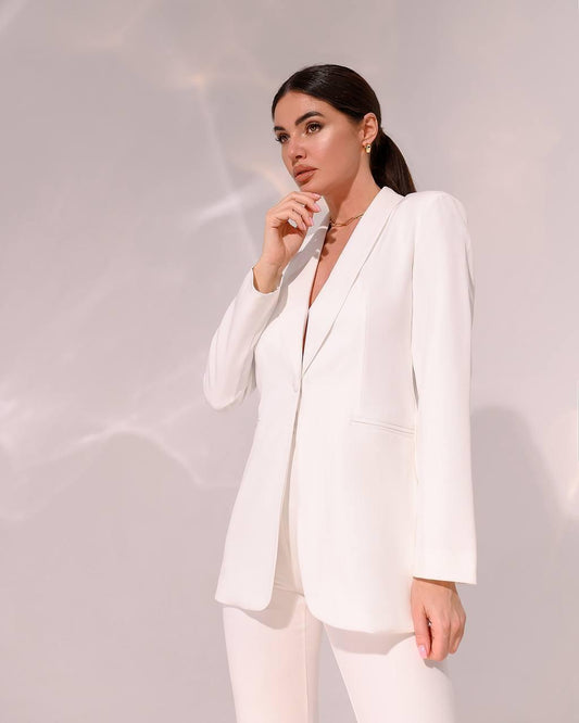 Weißer klassischer 2-teiliger Anzug mit ausgestellter Hose
