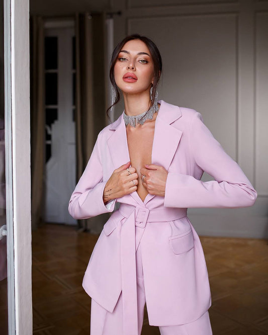 Zweiteiliger Anzug mit weitem Bein in Altrosa mit Gürtel