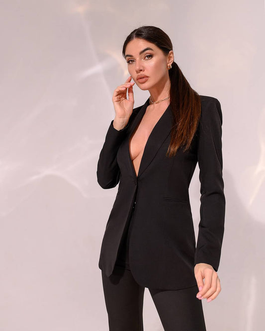 Schwarzer klassischer 2-teiliger Anzug mit ausgestellter Hose