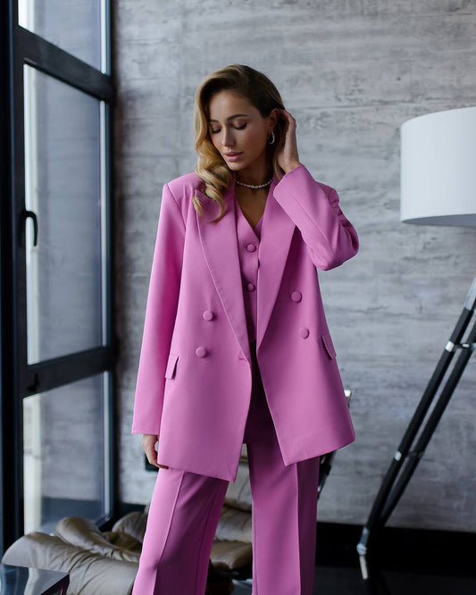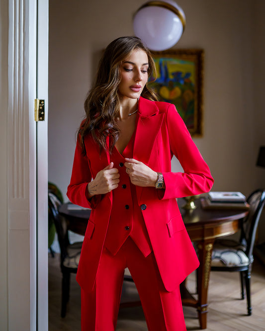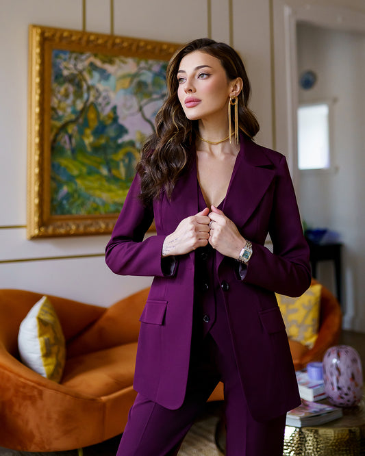 Purpurroter, dreiteiliger Anzug in normaler Passform