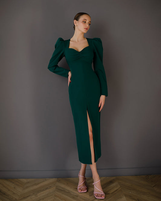 Alexa Queen Anne Midikleid mit Ausschnitt
