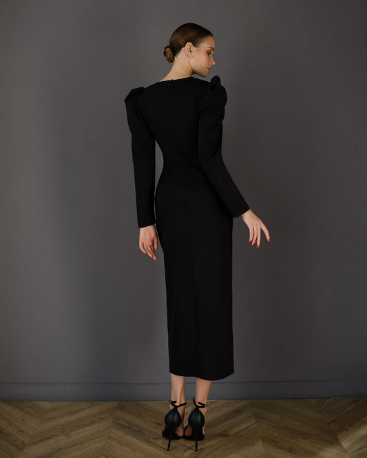 Anne Sky-Blue Puff Sleeve Midi Dress