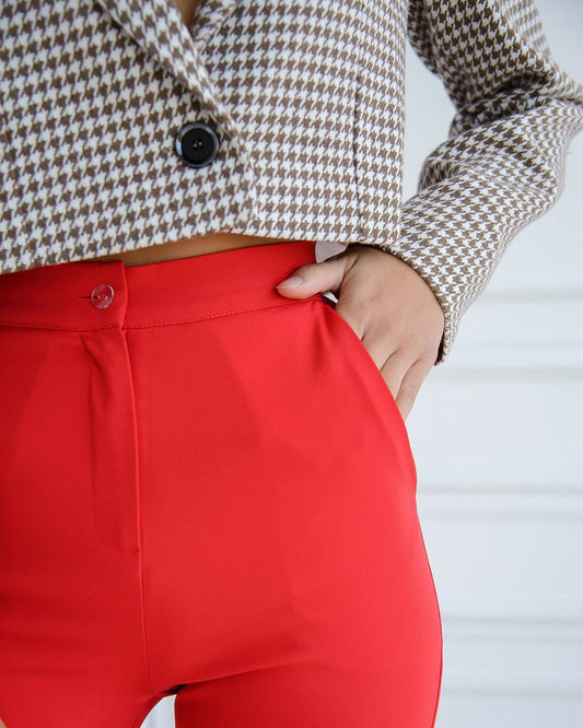 Beigefarbener, lässiger 3-teiliger Anzug mit gerader Beinhose und Top