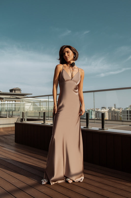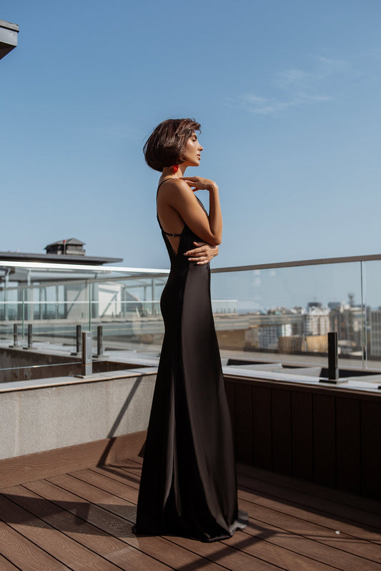 Sky-Blue Backless Puff Sleeve Midi Dress