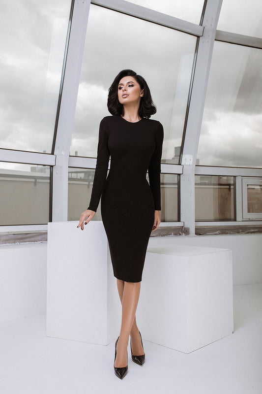 Schwarzes rückenfreies Midikleid mit Bleistift