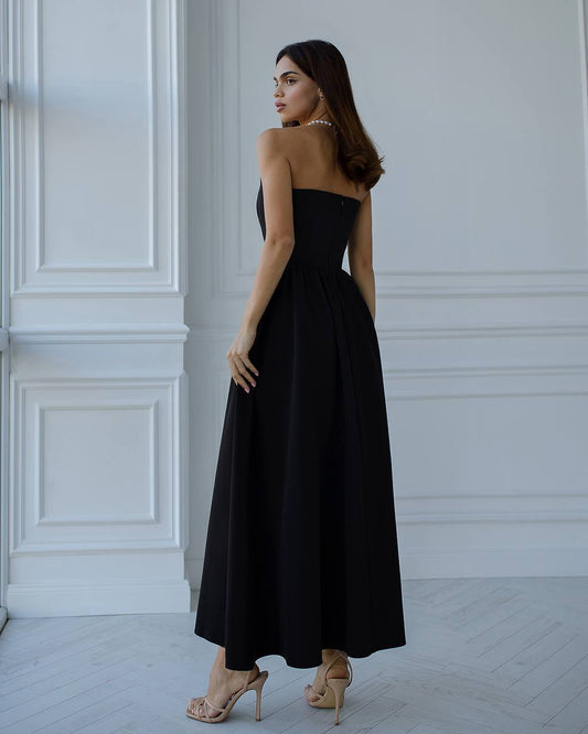 Black Strapless Midi Dress