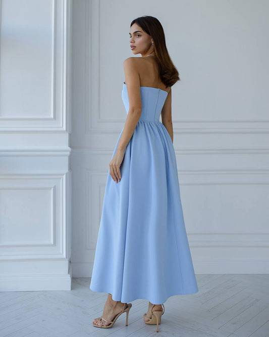 Sky-Blue Strapless Midi Dress