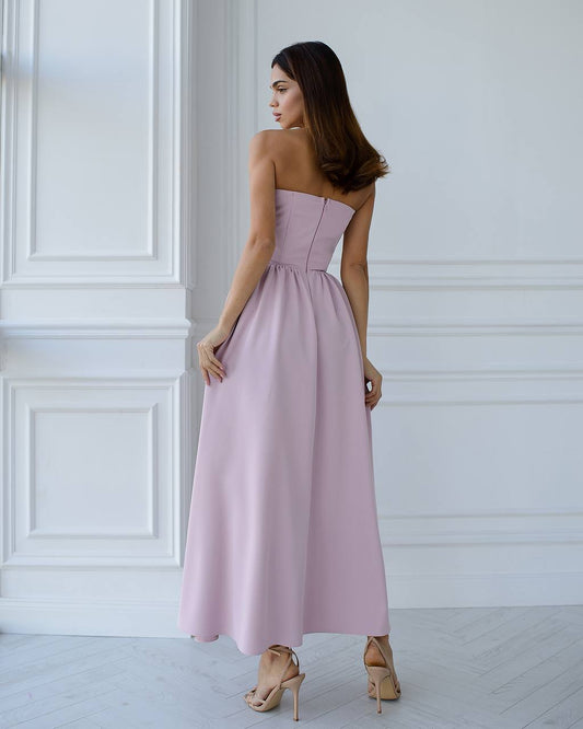 Dusty Pink Strapless Midi Dress