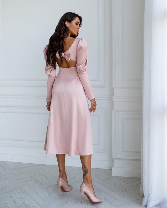 Altrosa Satin-Midikleid mit Schleife hinten