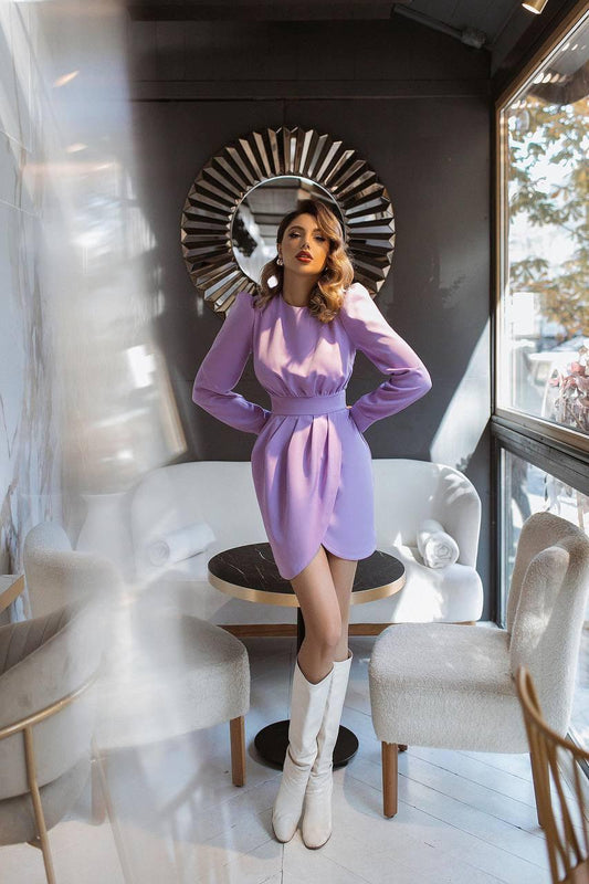 Purpurrotes Minikleid aus Satin mit Puffärmeln