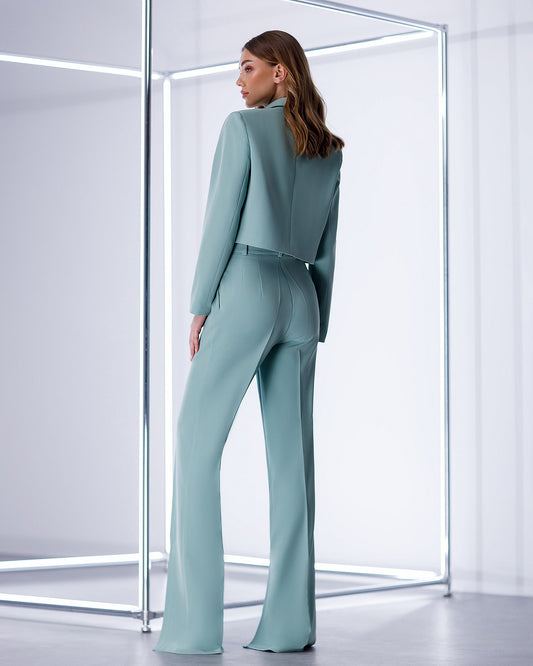 Tiffany-Blue Crop Jacket Suit 2-Piece