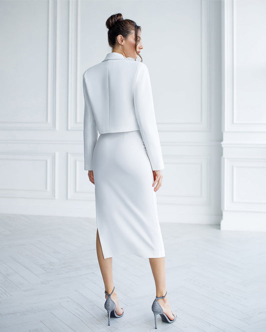 White Crop Jacket Skirt Suit 2-Piece Suit