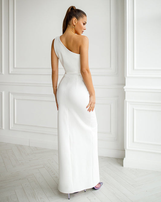 Bandage White One-Shoulder Cut-Out Maxi Dress
