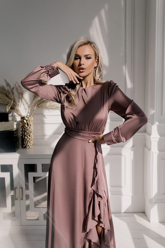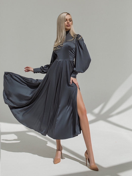 Langärmliges Maxikleid aus Graphitseide