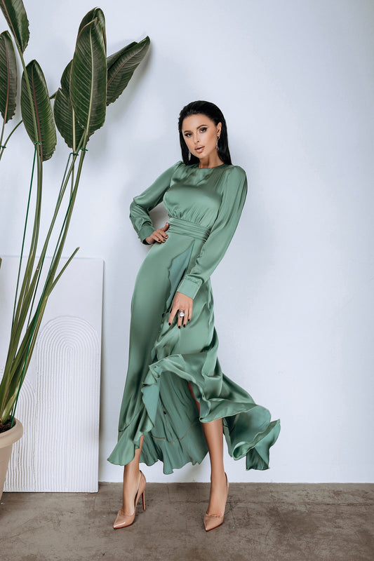 Grünes Maxikleid mit Oberschenkelschlitz