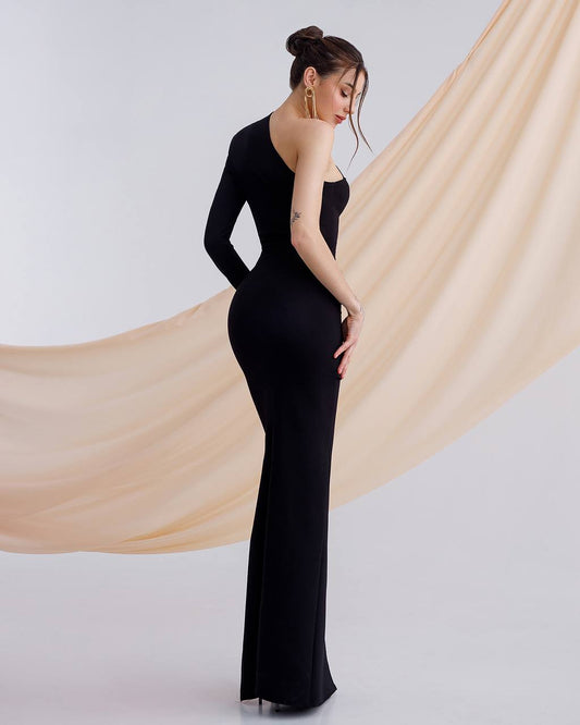Bandage Schwarzes One-Shoulder-Maxikleid mit Beinschlitz