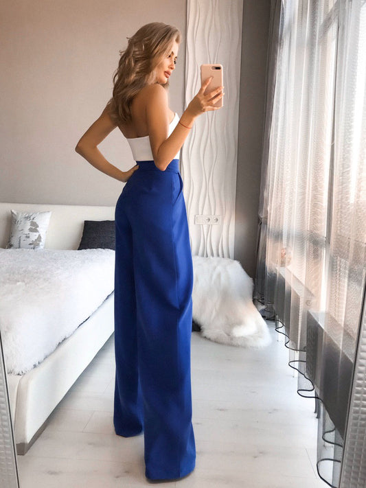 Blaue Palazzo-Hose mit hoher Taille