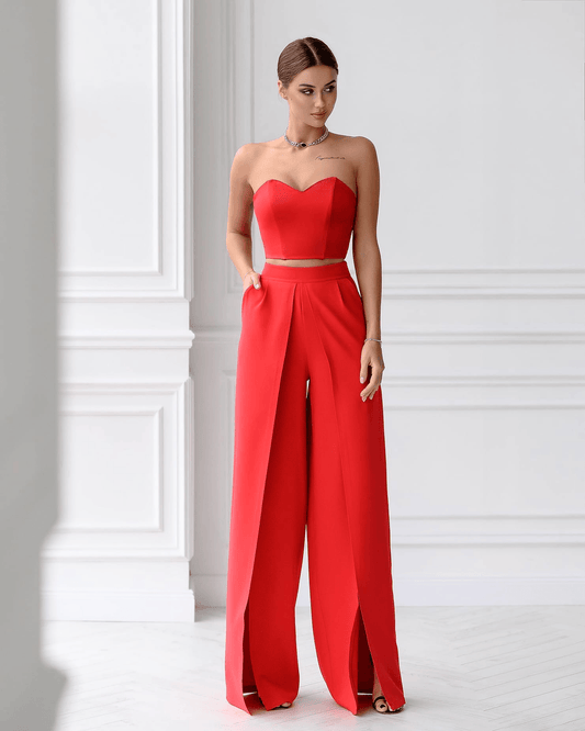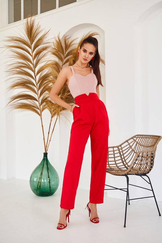 Rote Bluse mit V-Ausschnitt und Puffärmeln