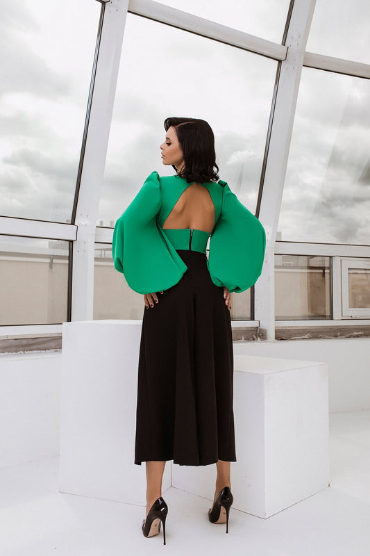 Grüne Bluse mit Puffärmeln und V-Ausschnitt