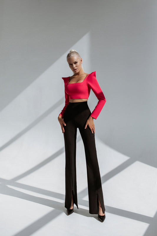Crimson Langarm-Crop-Top mit eckigem Ausschnitt