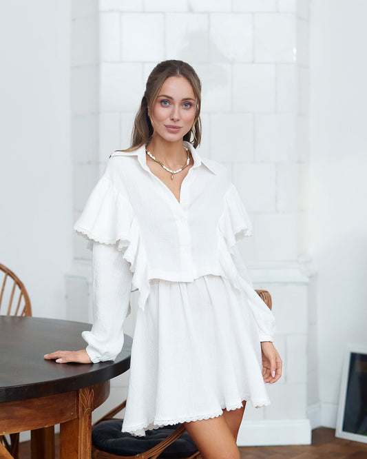 White Ruffled Blouse & Skirt 2-Piece Set