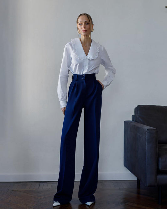 White Ruffled Collar Button-Up Blouse