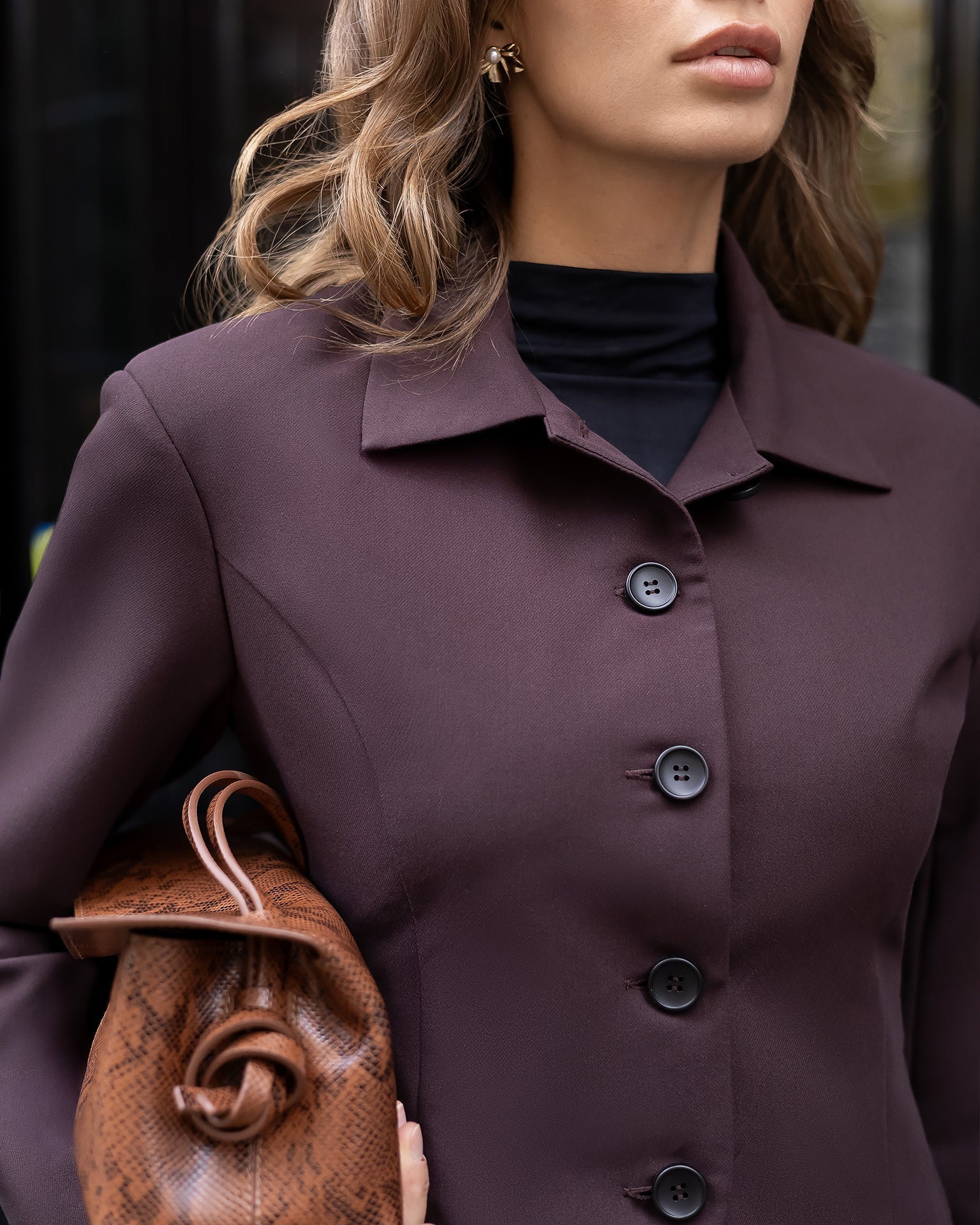 Elara Brown Cropped Button-Up Jacket & Mini Skirt Suit 2-Piece