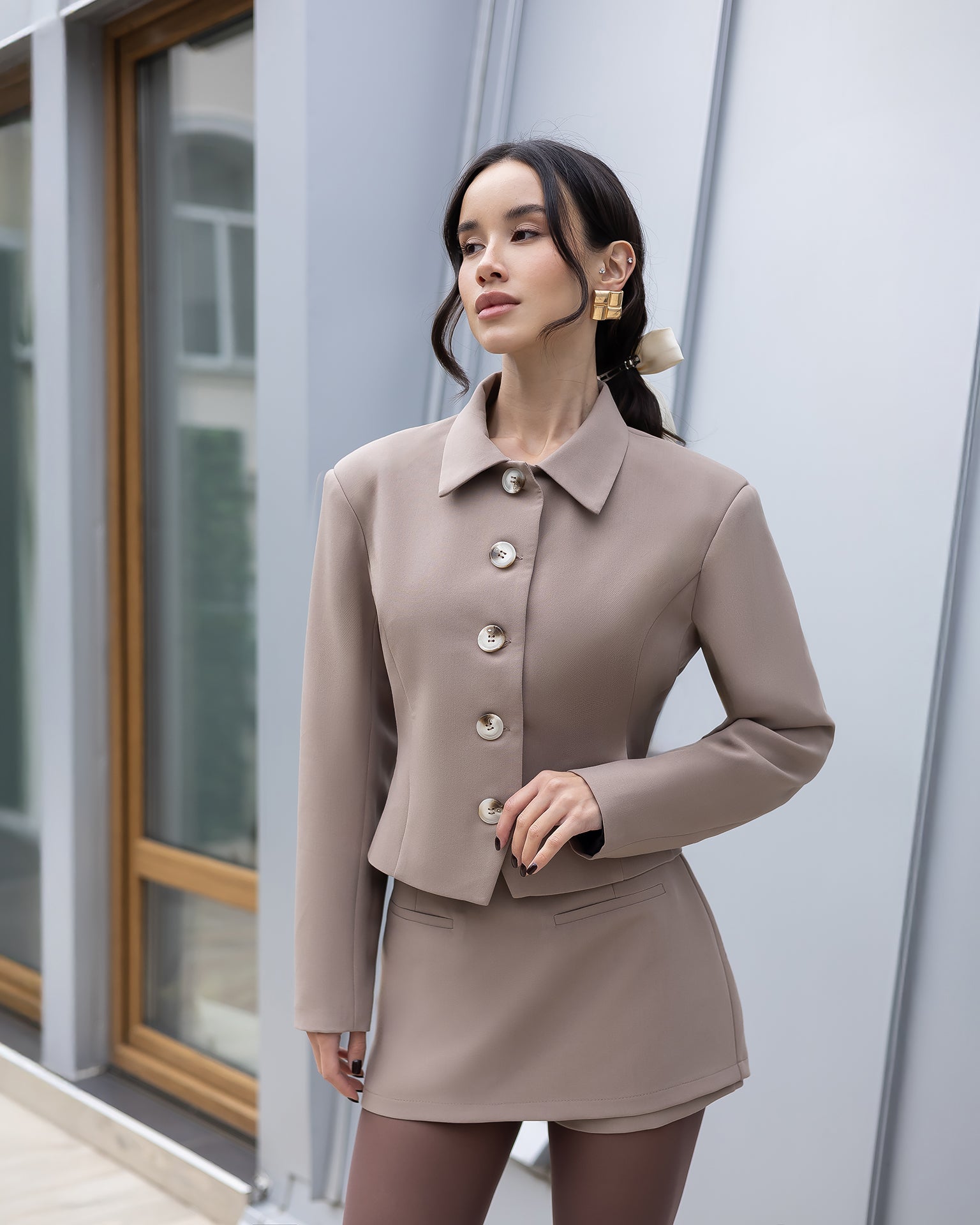 Elara Mocco Cropped Button-Up Jacket & Mini Skirt Suit 2-Piece