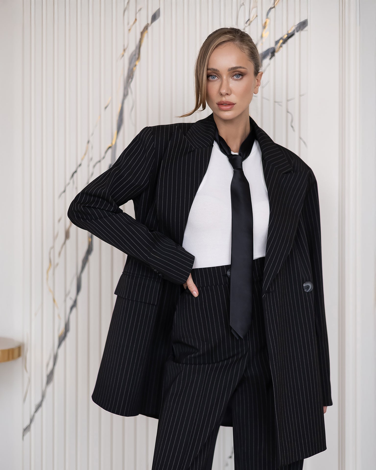 Liora Black Striped Oversized Double-Breasted Suit 2-Piece