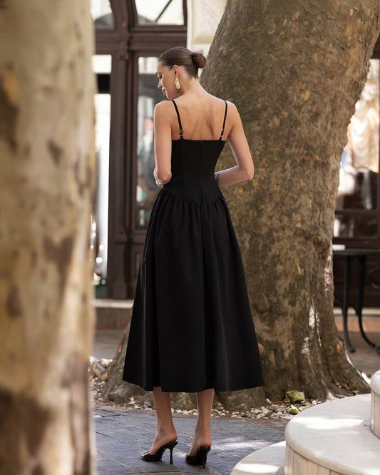 Monica Black Strappy Sweetheart Neckline Midi Dress