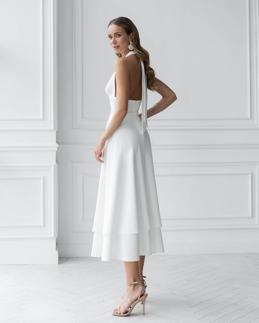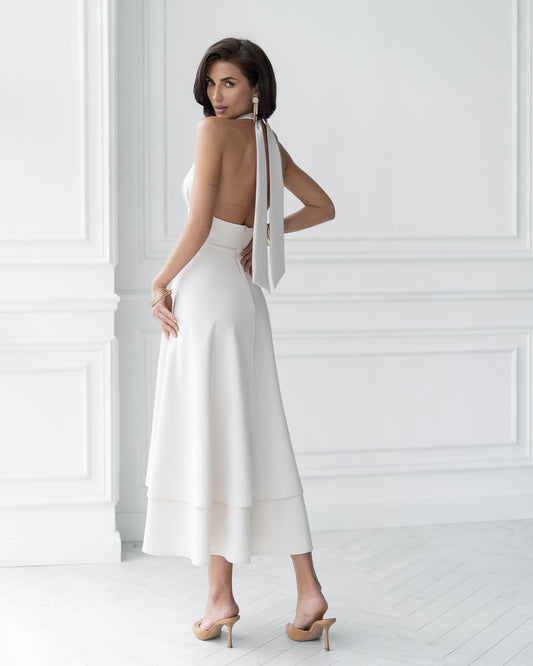 Gloria Beige Open-Back Halter-Neck Midi Dress