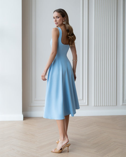 Stella Sky-Blue Square Neck Backless Midi Dress