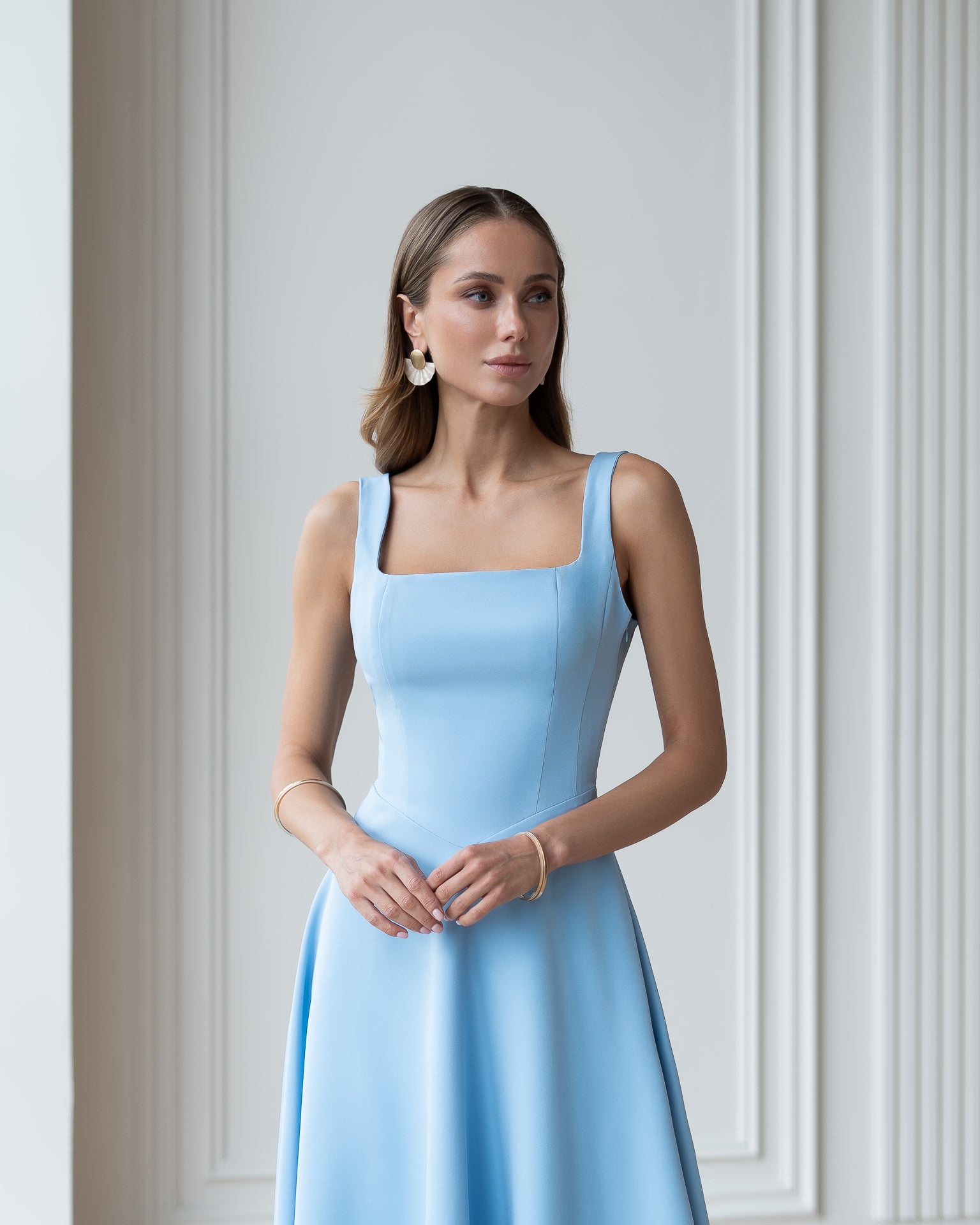 Stella Sky-Blue Square Neck Backless Midi Dress